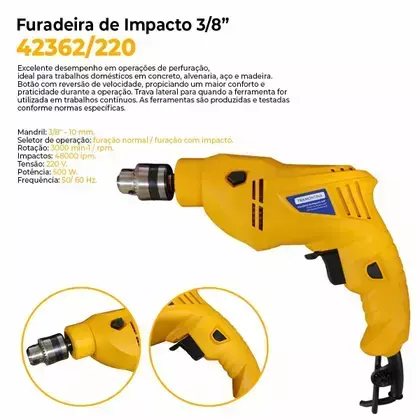 Furadeira de Impacto Tramontina Velocidade Variável Reversível 3/8P 42360/210 500W 220V